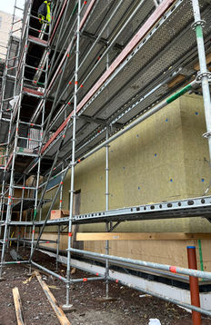 Bostäderna kommer att byggas helt i trä – från stomme till fasad. Fasadernas panel varierar i dimension och riktning. På gaveln placeras en iögonfallande utsmyckning som blir gångstråkets blickfång.